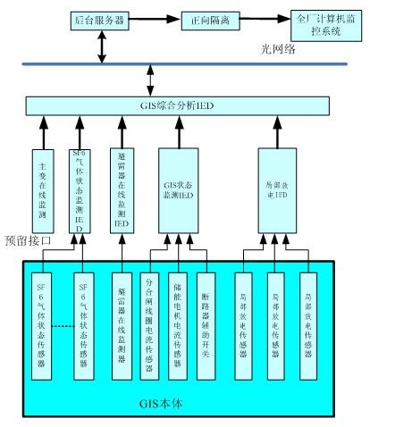 西藏旁多水電站在線監(jiān)測系統(tǒng),對220kV和110kVGIS本體進行在線監(jiān)測,主要有斷路器在線監(jiān)測、SF6微水密度在線監(jiān)測、局部放電在線監(jiān)測、避雷器在線監(jiān)測以及全站在線監(jiān)測分析中心。系統(tǒng)組成如下: