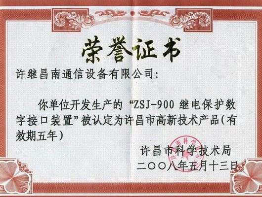 ESB900高新技術(shù)榮譽(yù)證書(shū)