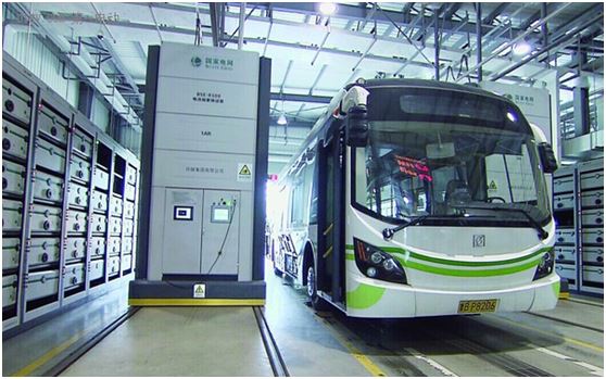 南京南河風光帶內(nèi)的南河充換電站于2013年正式完成建設,全車電池更換時間約6至8分鐘,每天換電服務能力為72車次,可滿足30輛純電動公交車換電需求。